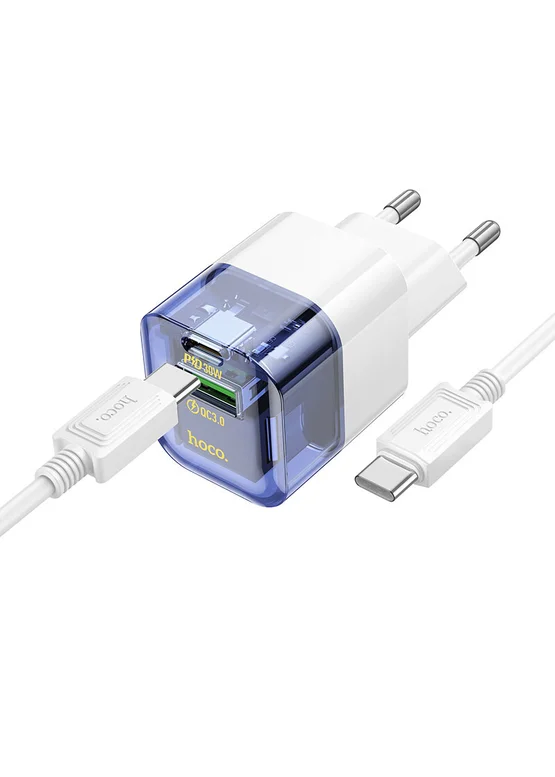 СЗУ Hoco C131A Platium PD30W+QC3.0 + Type-C to Type-C Transparent blue