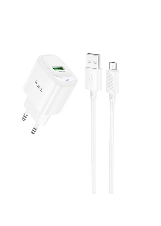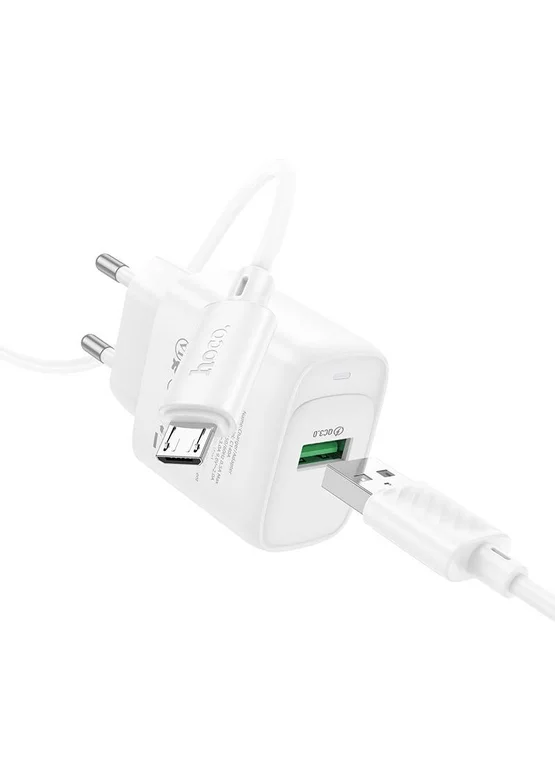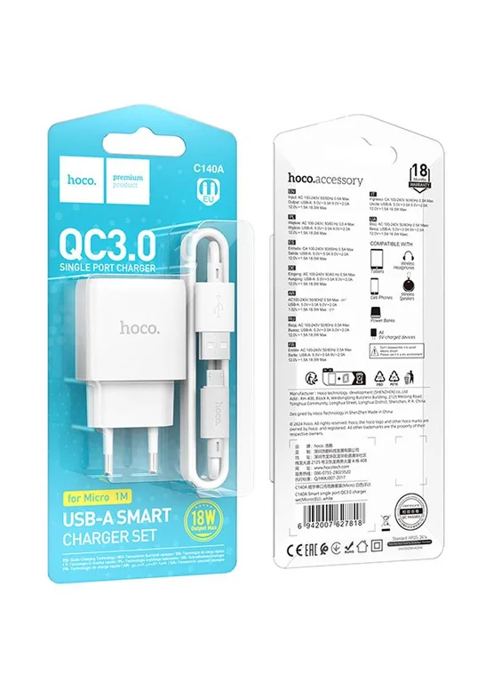СЗУ Hoco C140A Smart QC3.0 18W (1USB-A) + кабель USB to MicroUSB White