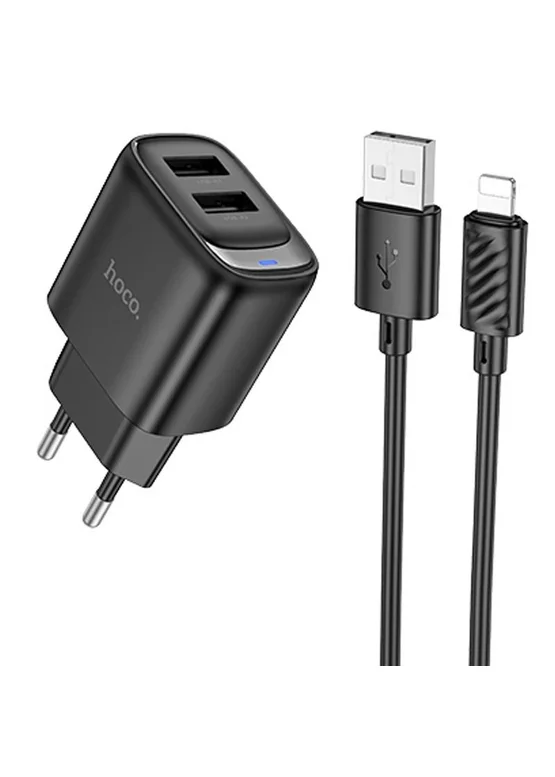 СЗУ Hoco C141A Smart 2.1A (2USB-A) + кабель USB to Lightning Black