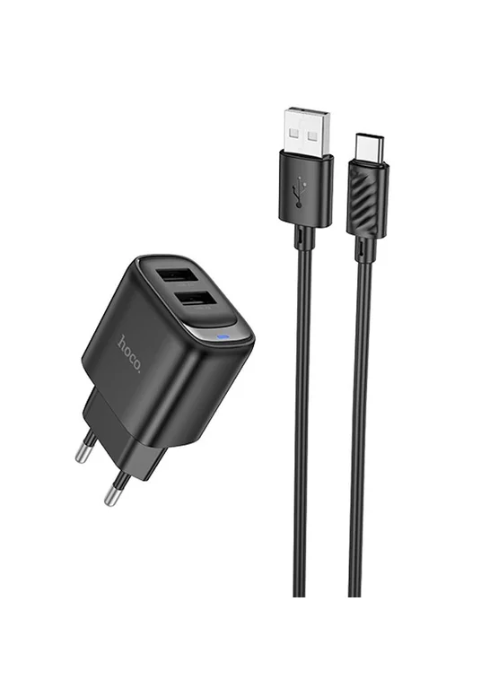 СЗУ Hoco C141A Smart 2.1A (2USB-A) + кабель USB to Type-C Black