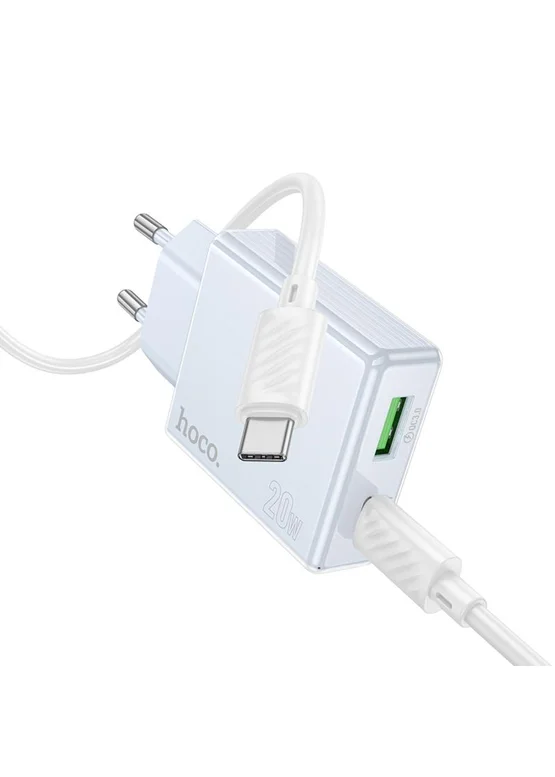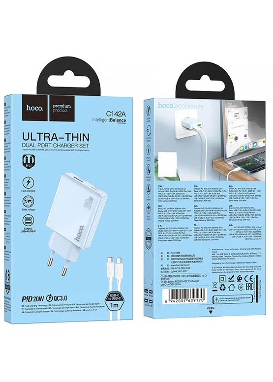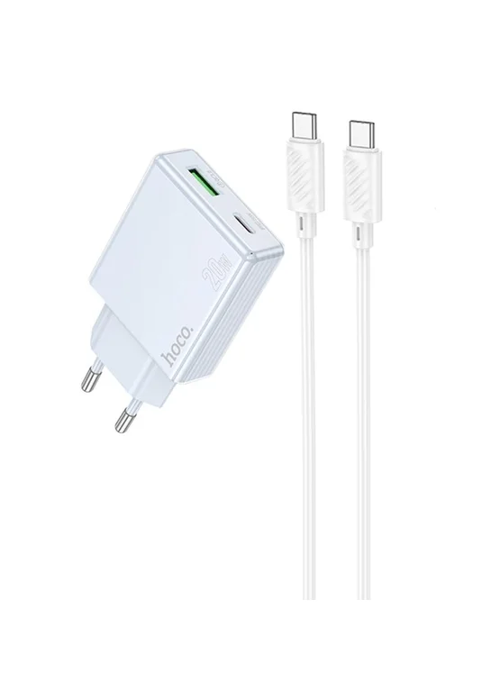 СЗУ Hoco C142A Direct PD20W+QC3.0 (1USB-A/1C) + кабель Type-C to Type-C Blue