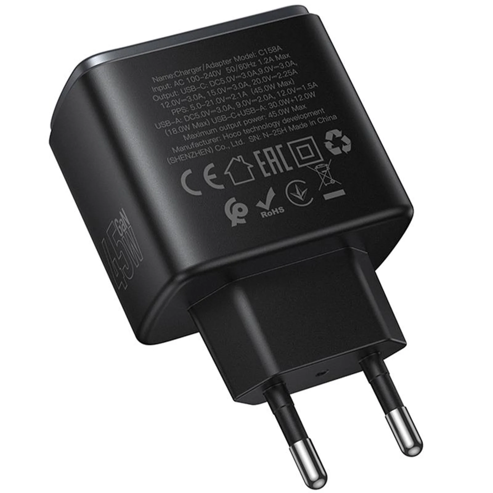 СЗУ Hoco C158A Upgrade PD45W (1USB-A/1C) Black