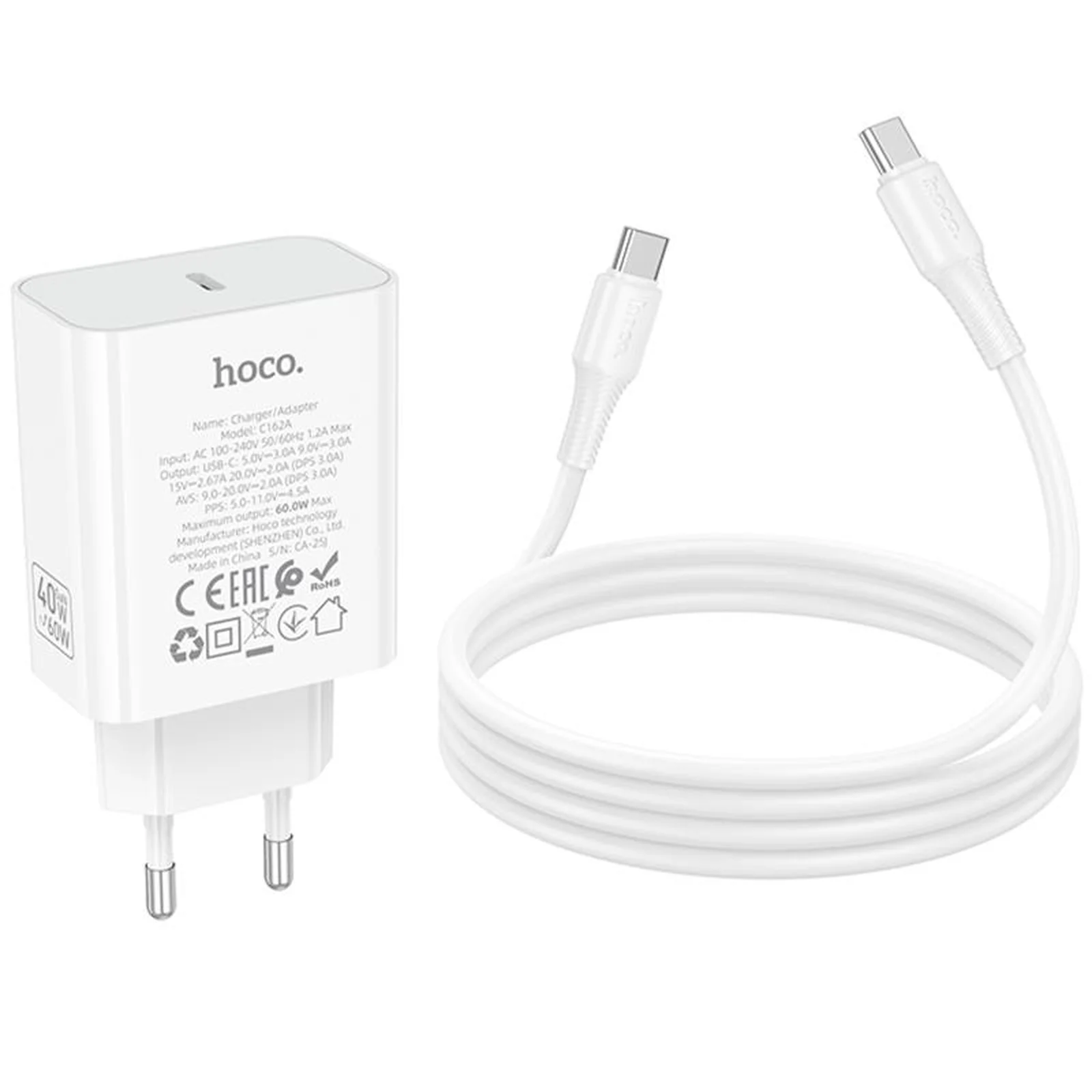 СЗУ Hoco C162A Source PD40W (1USB-C) + кабель Type-C to Type-C White