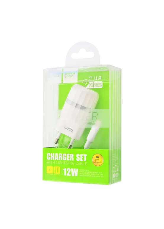 СЗУ Hoco C41A Charger + Cable (Lightning) 2.4A 2USB (white)