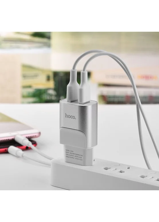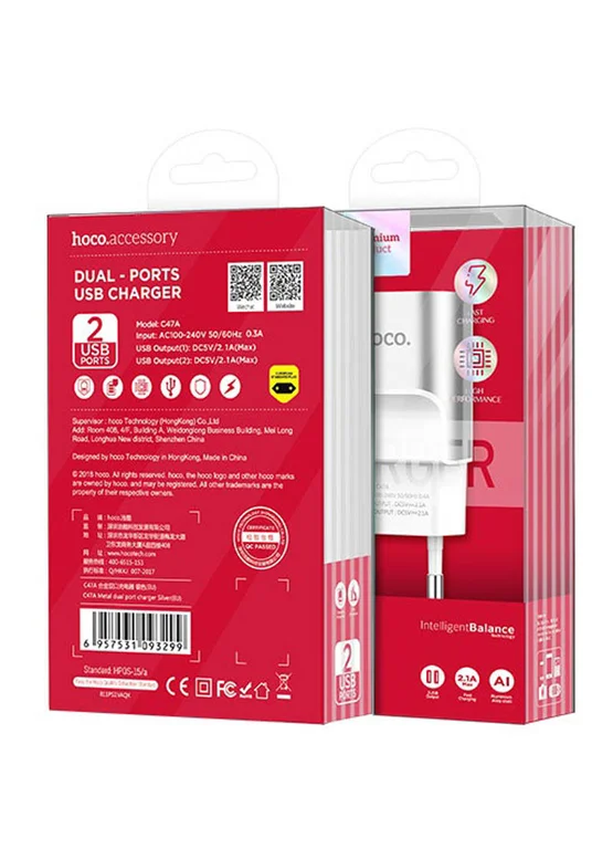 СЗУ Hoco C47A 2.1A 2USB (Стальной)