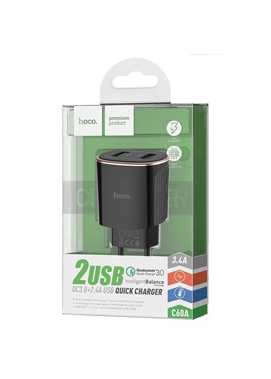 СЗУ Hoco C60A QC3.0 (2USB/3.4A) (Черный)