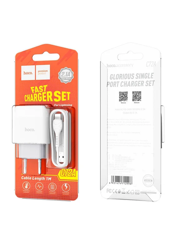 СЗУ Hoco C72A (1USB/2.1A) + Lightning (Белый)
