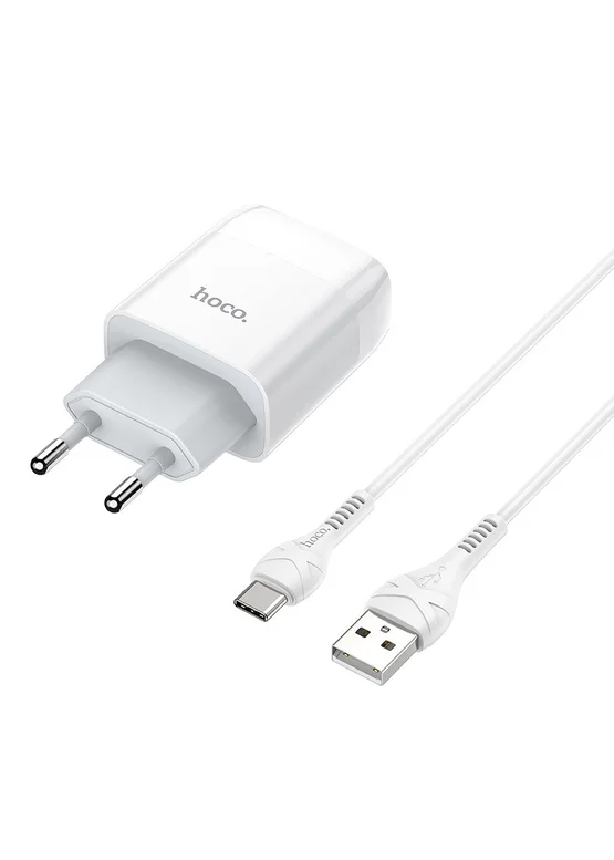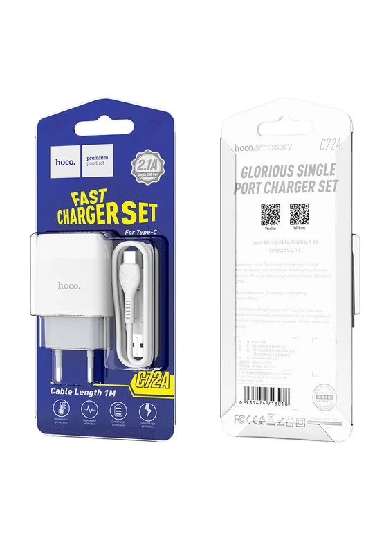 СЗУ Hoco C72A (1USB/2.1A) + Type-C (Белый)