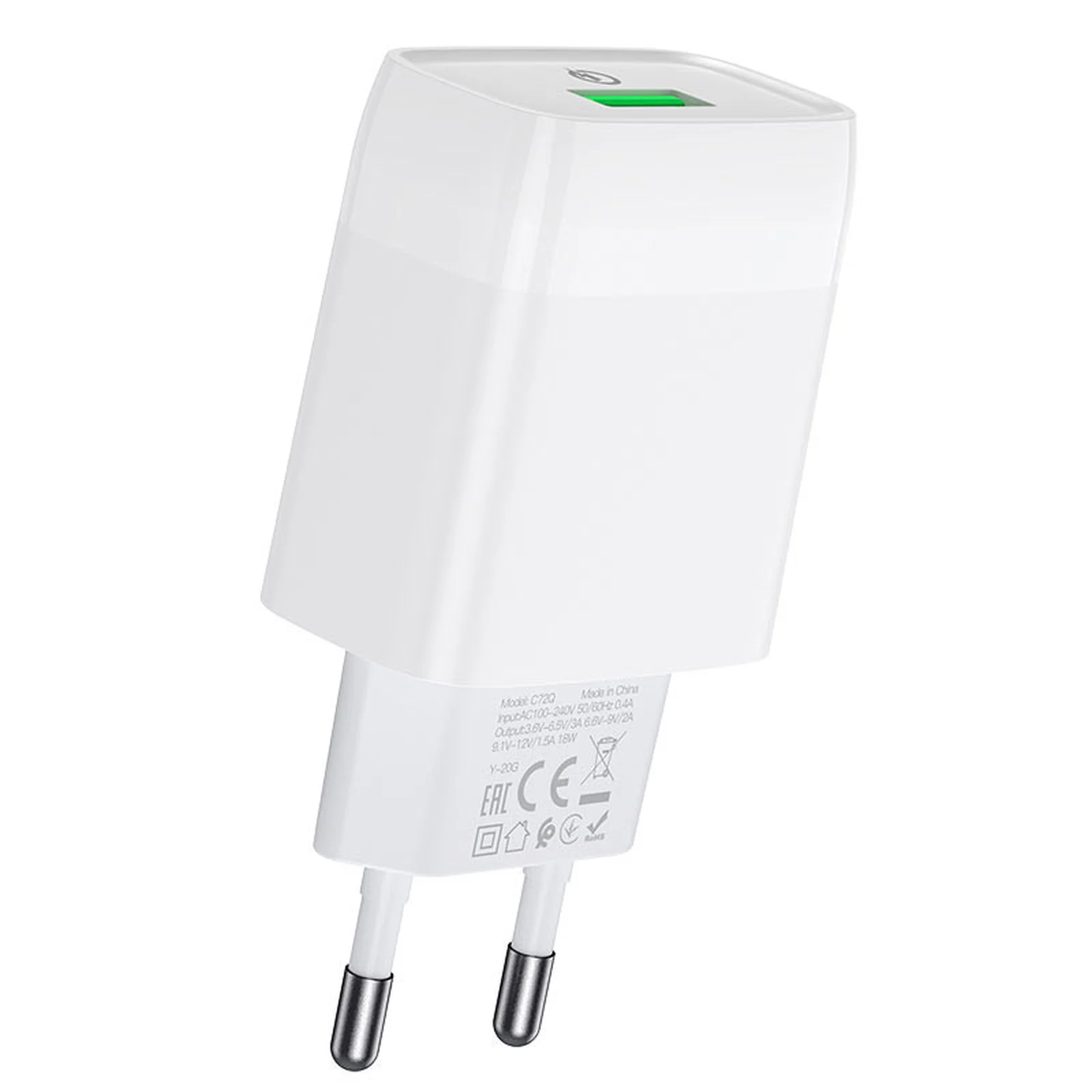 Подходит для большинства европейских розеток; позволяет заряжать устройства через один USB-порт; функция сверхбыстрой зарядки QC3.0/QC2.0.