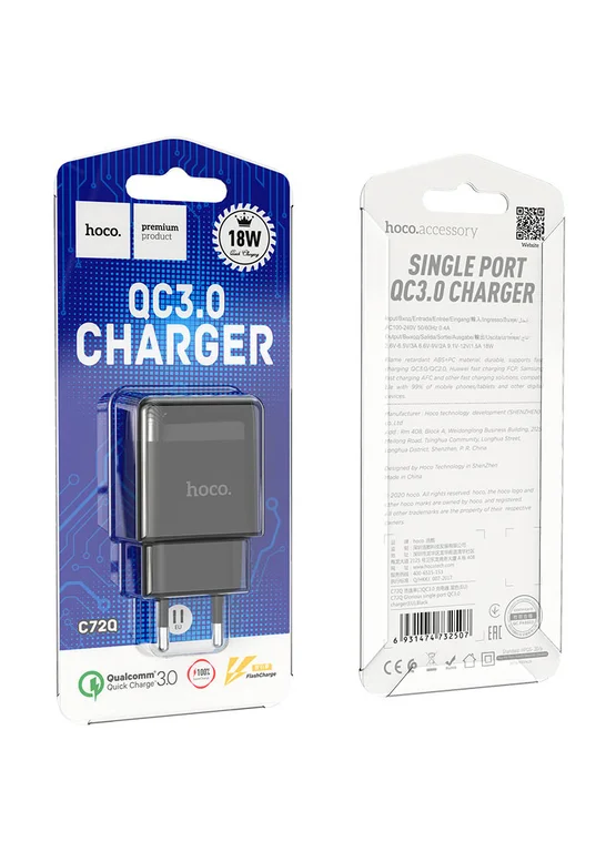 Подходит для большинства европейских розеток; позволяет заряжать устройства через один USB-порт; функция сверхбыстрой зарядки QC3.0/QC2.0.
