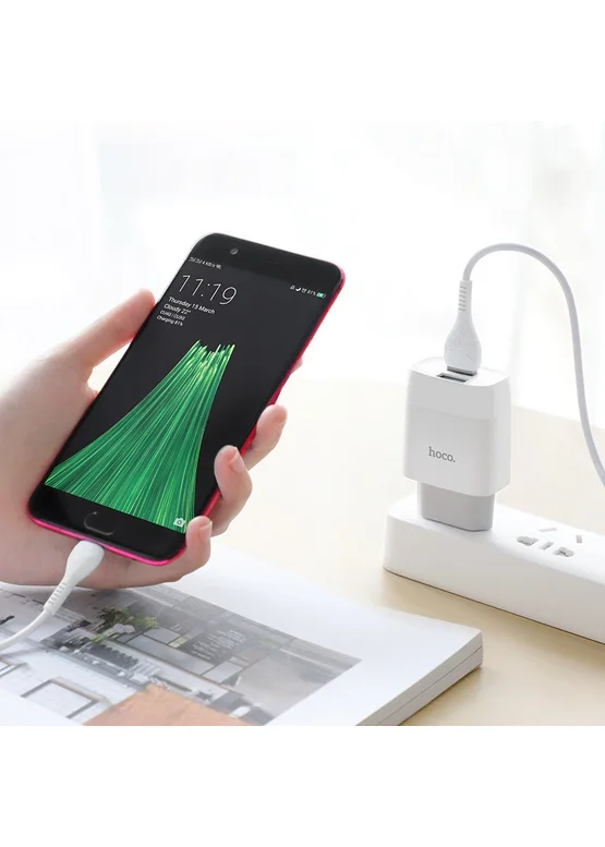 СЗУ HOCO C73A (2USB/2.4A) + microUSB (Белый)