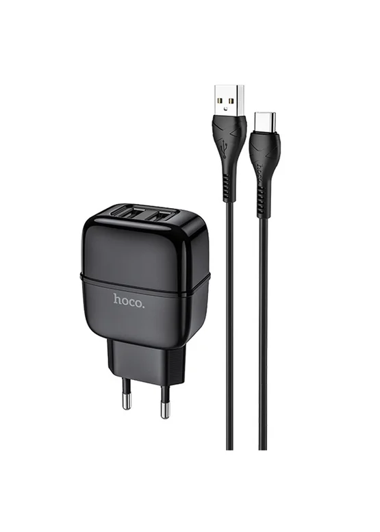 СЗУ Hoco C77A (2USB/2.4A) + Type-C (Черный)