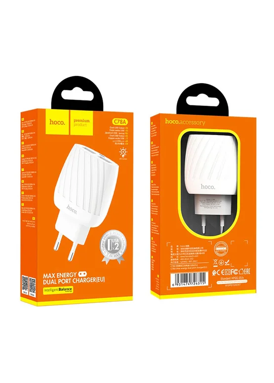 СЗУ Hoco C78A (2USB/2.4A) (Белый)
