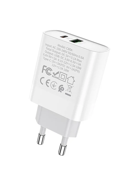 СЗУ HOCO C80A PD 20W+QC3.0 Type-C + USB Белый