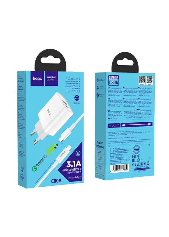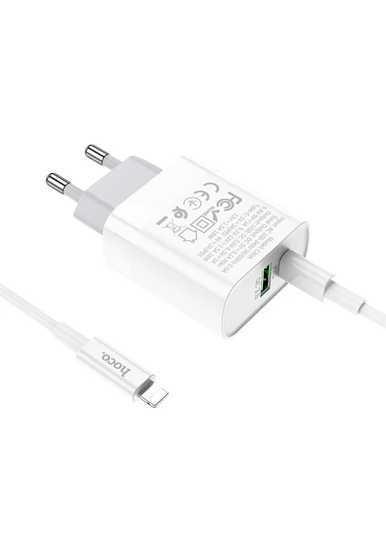 СЗУ HOCO C80A PD+QC3.0 (1USB/3.1A) Type-C to lightning (Белый)