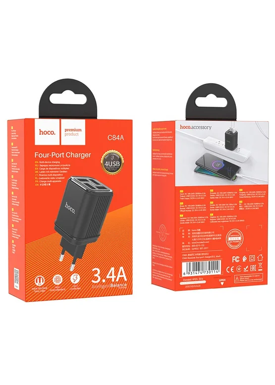 СЗУ HOCO C84A Resolute four-port charger (EU) (Черный)