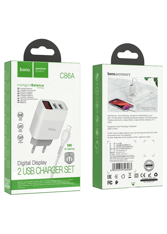 СЗУ HOCO C86A (2USB/2.4A) + Lightning Белый
