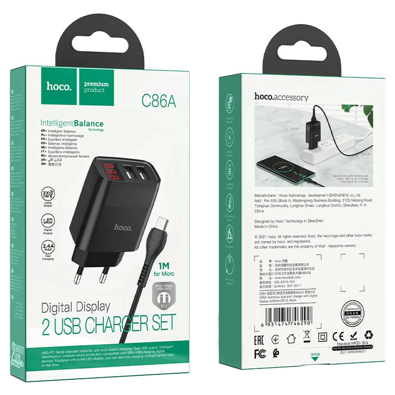 СЗУ Hoco C86A Balance 2.4A (2USB-A) + кабель USB to MicroUSB Черный