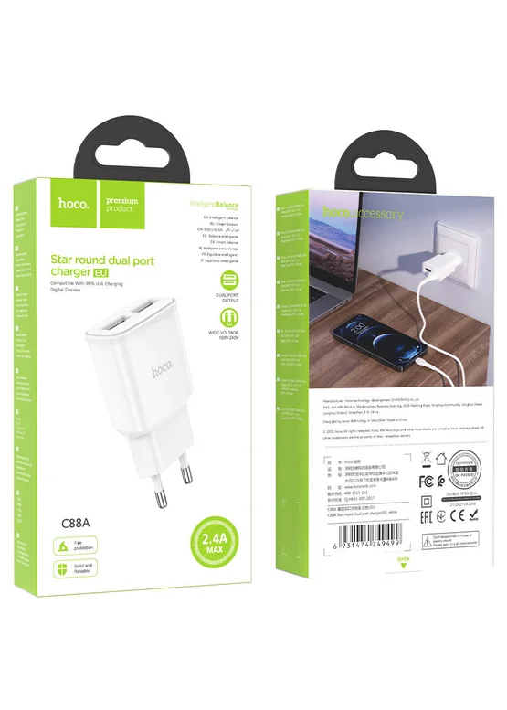 СЗУ Hoco C88A (2USB/2.4A) Белый