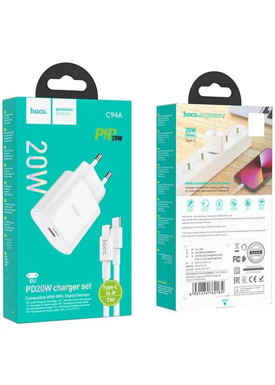 СЗУ Hoco C94A Metro PD20W (1USB-C) + кабель Type-C to Lightning White