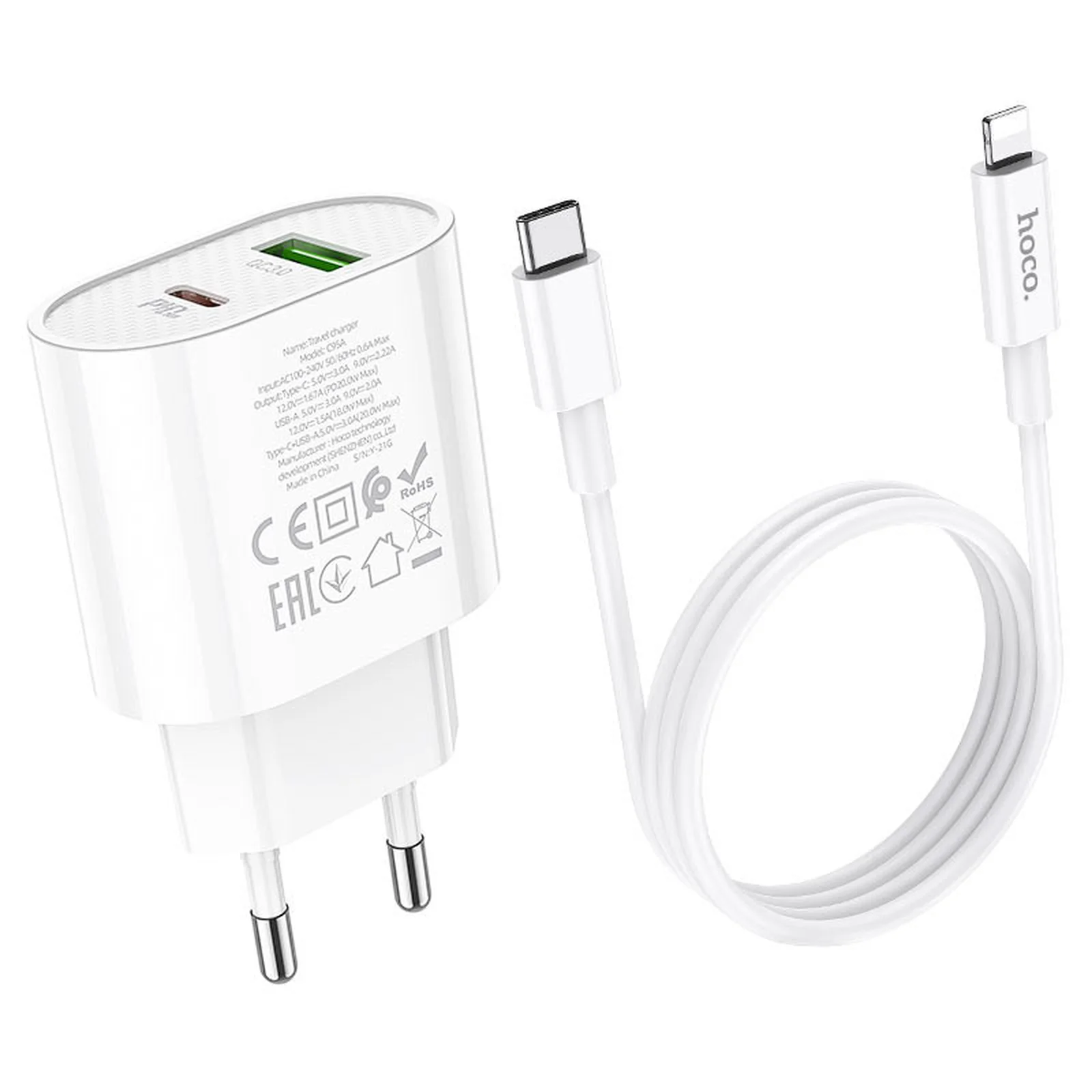 СЗУ HOCO C95A PD 20W+QC3.0 (1USB/Type-C/3A) + Type-C to Lightning White