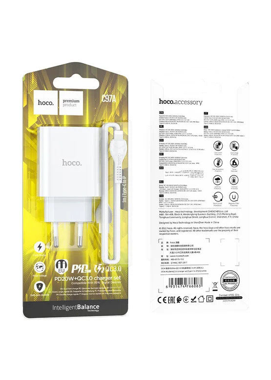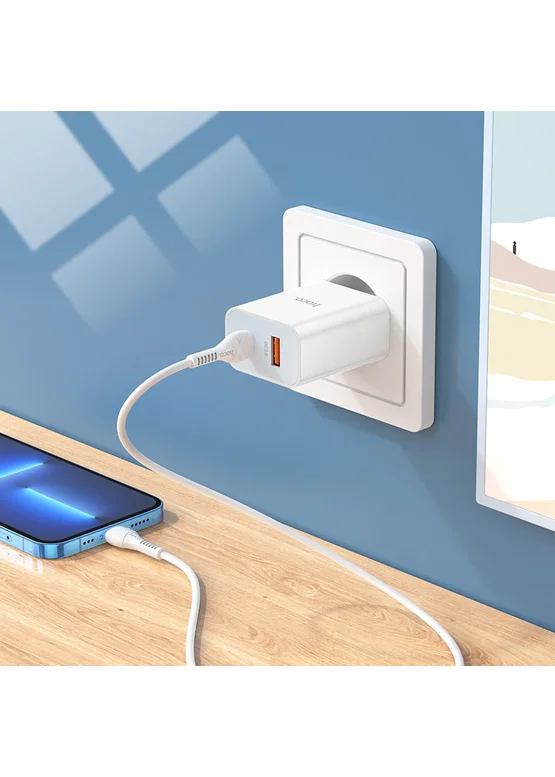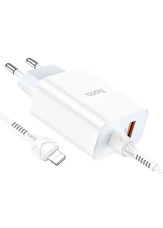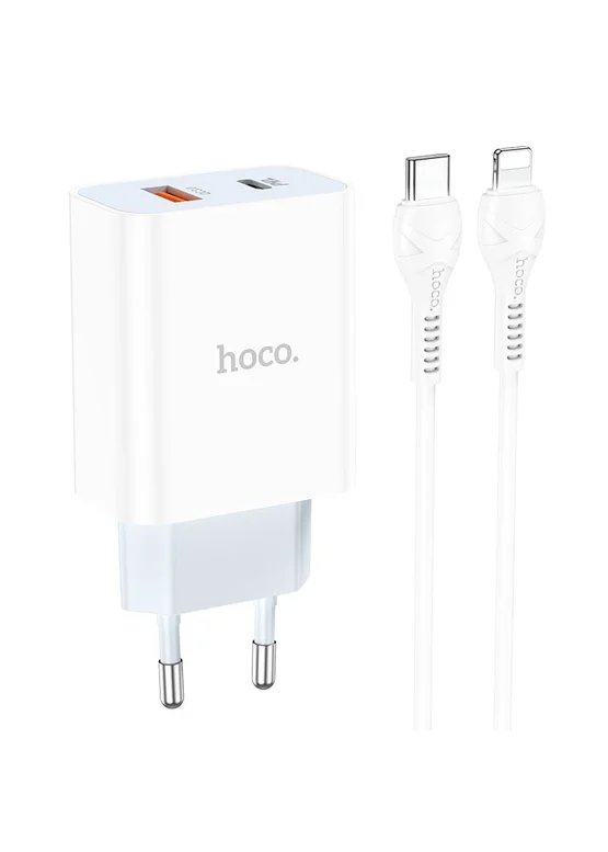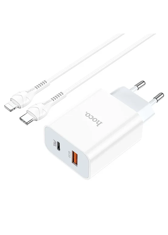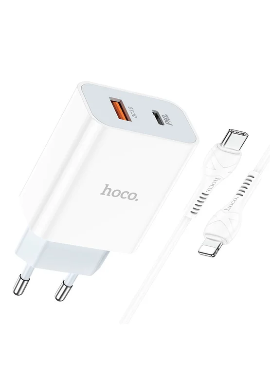 СЗУ HOCO C97A PD20W+QC3.0 (1USB/1Type-C/3A) + Type-C to Lightning Белый