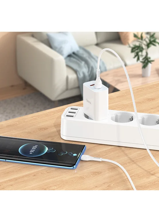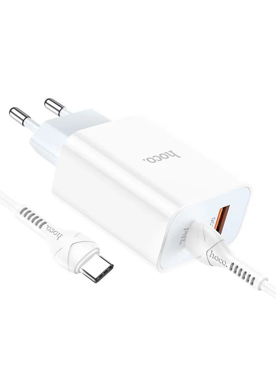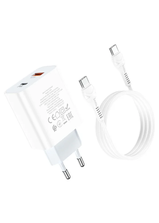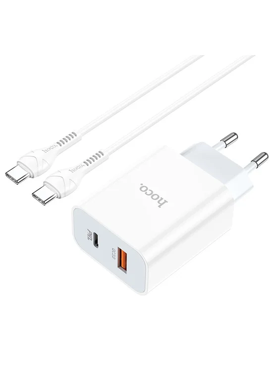 СЗУ HOCO C97A PD20W+QC3.0 (1USB/1Type-C/3A) + Type-C to Type-C Белый