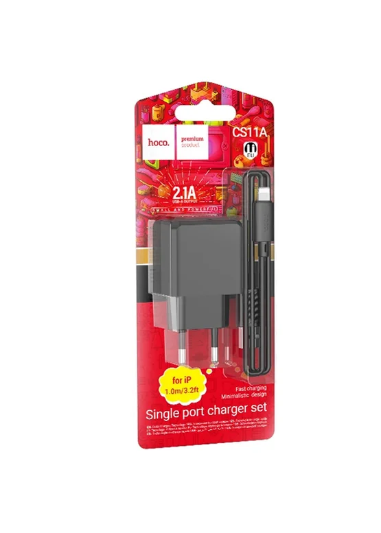 СЗУ HOCO CS11A (1USB) + Lightning Black