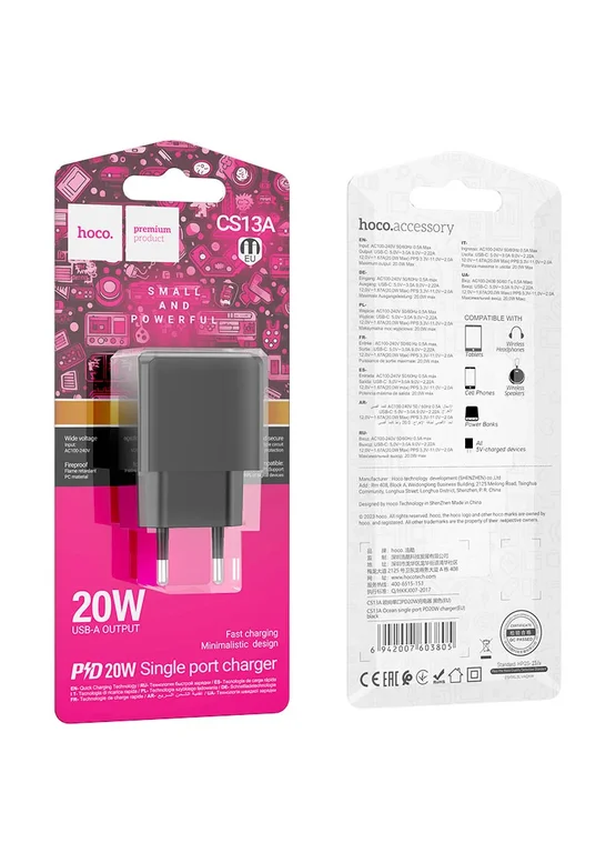 СЗУ HOCO CS13A Ocean PD20W (1USB-C) Black