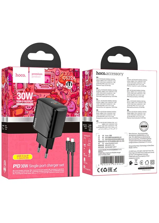 СЗУ Hoco CS22A Value PD30W + Type-C to Lightning Black