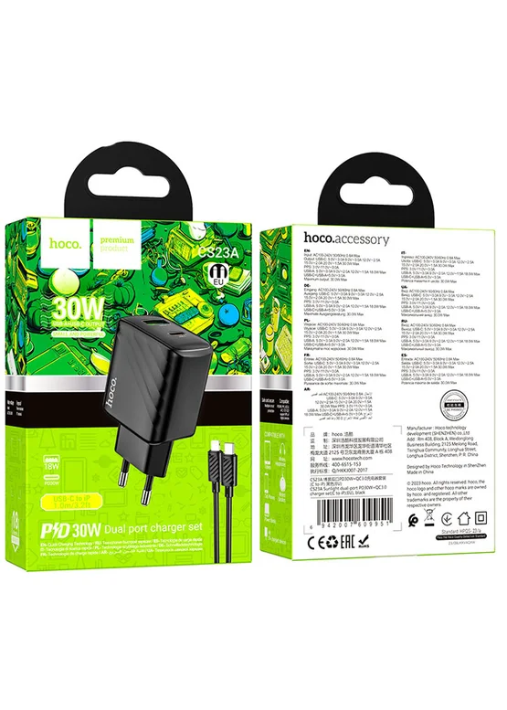 СЗУ Hoco CS23A Sunlight PD30W+QC3.0 + Type-C to Lightning Black
