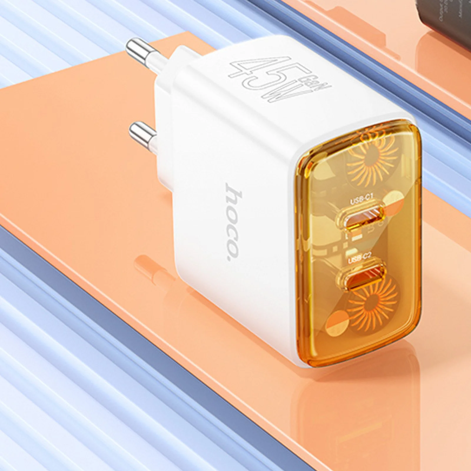 СЗУ Hoco CS43A Smart PD45W (2C) + Type-C to Type-C White