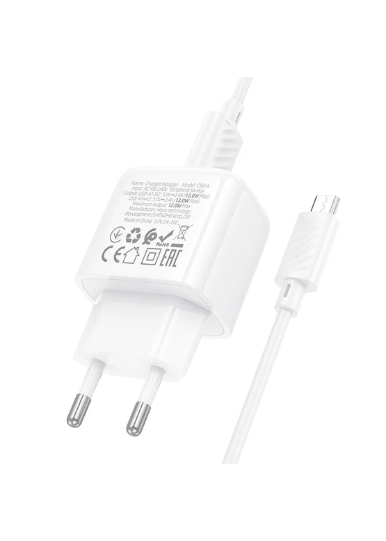 СЗУ Hoco CS51A Surplus (2USB-A) + MicroUSB White