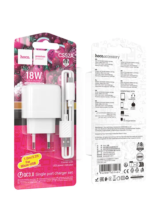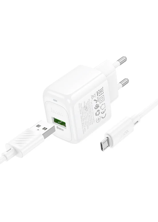 СЗУ Hoco CS52A Surplus QC3.0 (1USB-A) + кабель USB to MicroUSB White