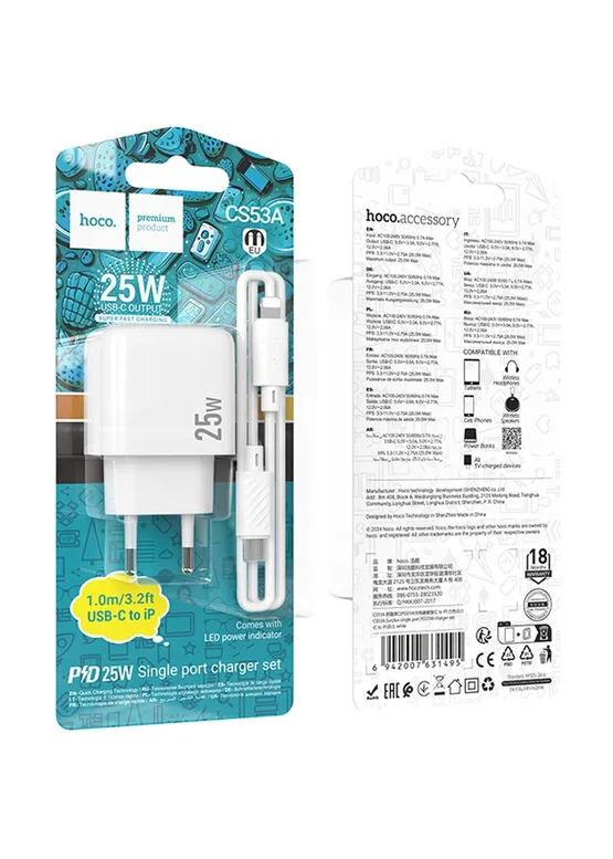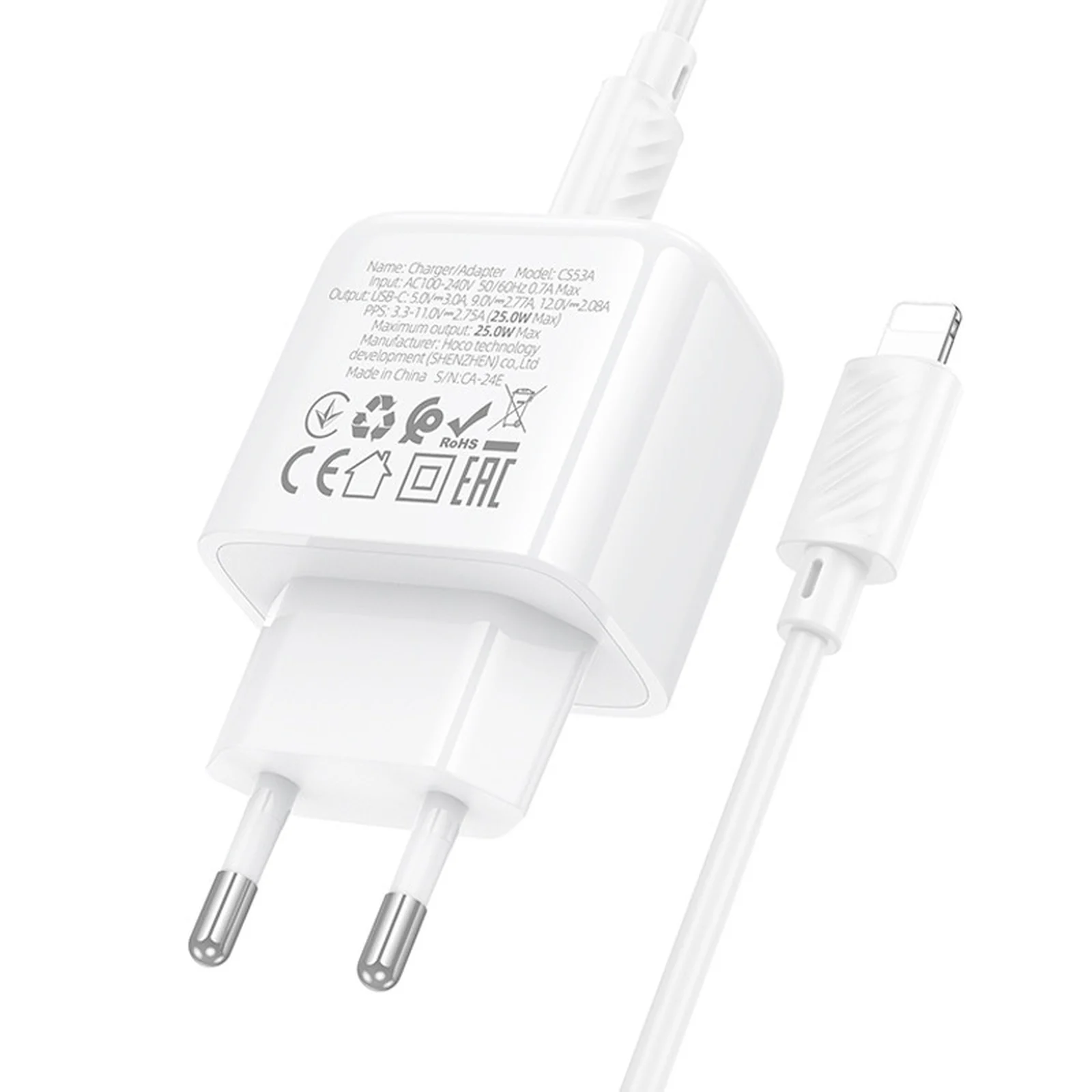 СЗУ Hoco CS53A Surplus PD25W (1USB-C) + Type-C to Lightning White