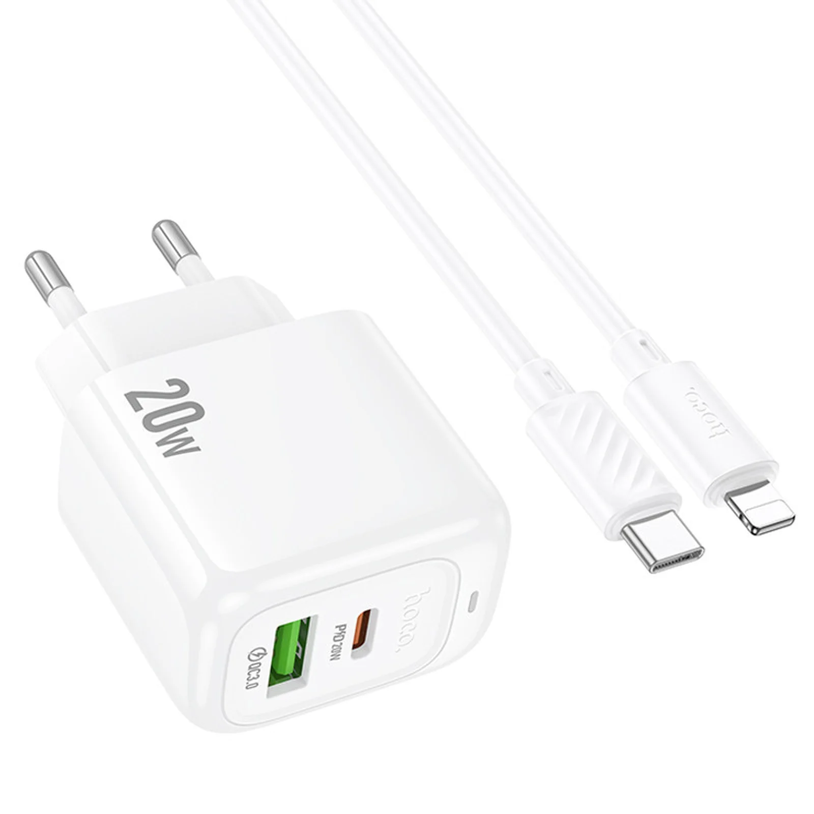 СЗУ Hoco CS54A Surplus PD20W+QC3.0 (1USB-A/1C) + кабель Type-C to Lightning White