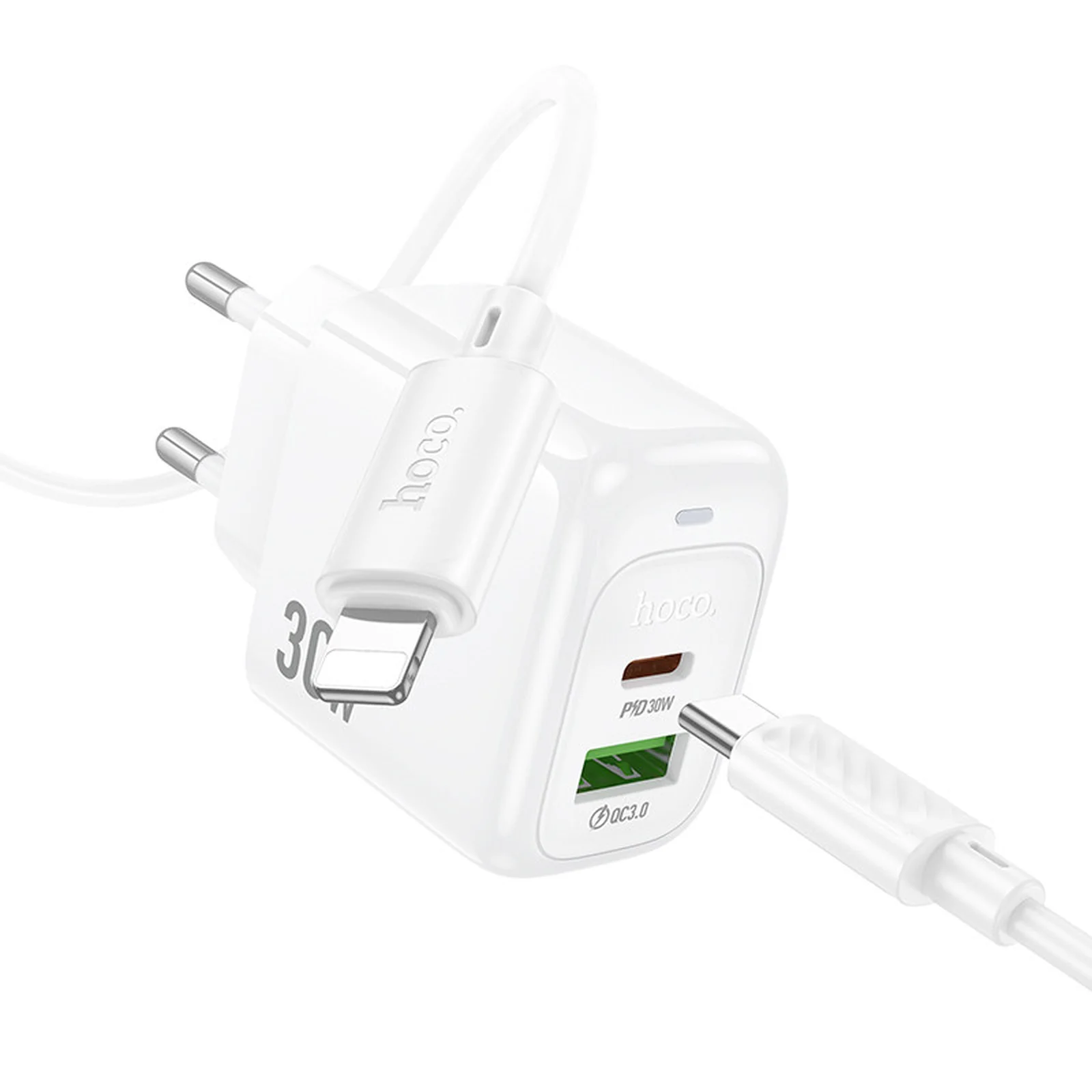 СЗУ Hoco CS55A Surplus PD30W+QC3.0 (1USB-A/1C) + кабель Type-C to Lightning White