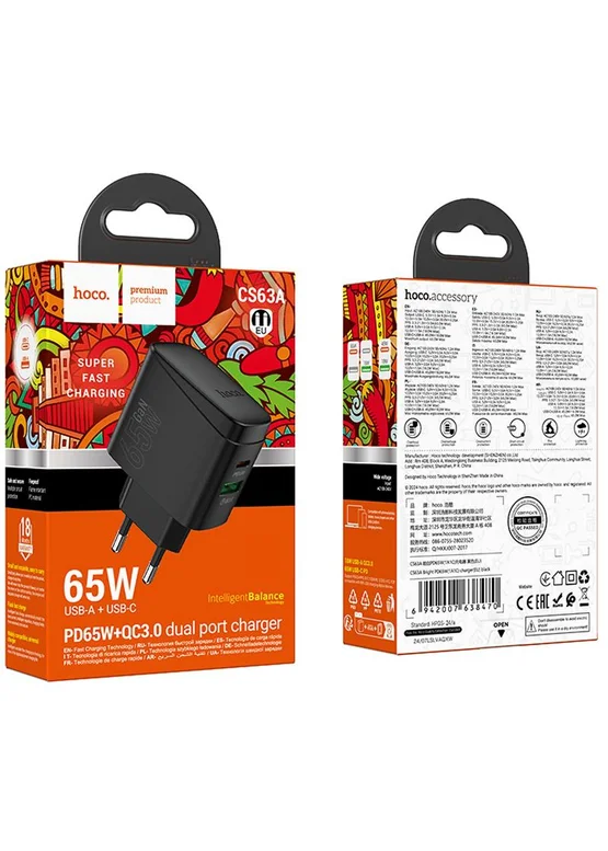 СЗУ Hoco CS63A Bright PD65W (1USB-A/1C)