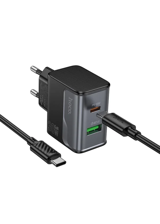 СЗУ Hoco CS73A Star Speed PD30W+QC3.0 (1USB-A/1C) + кабель Type-C to Type-C Midnight Black