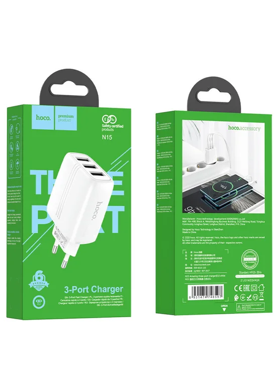 СЗУ Hoco N15 (3USB/2.4A/17W) Белый