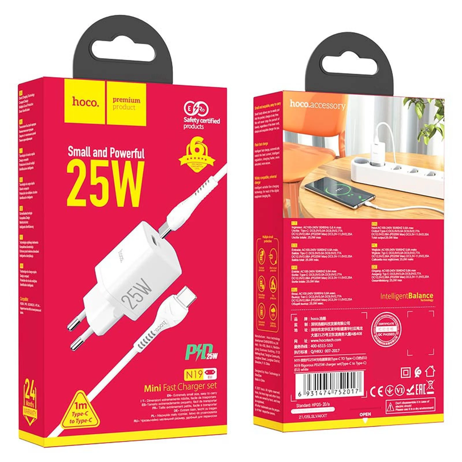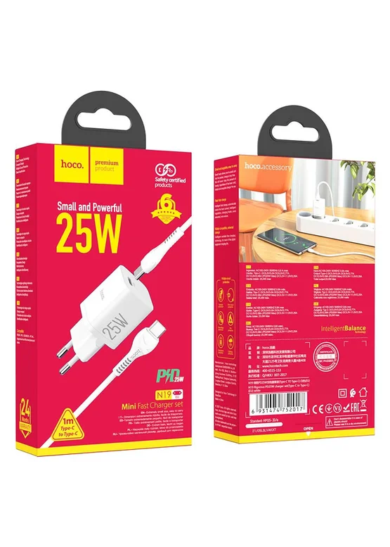 СЗУ HOCO N19 Rigorous PD25W 1Type-C + cable Type-C to Type-C Белый