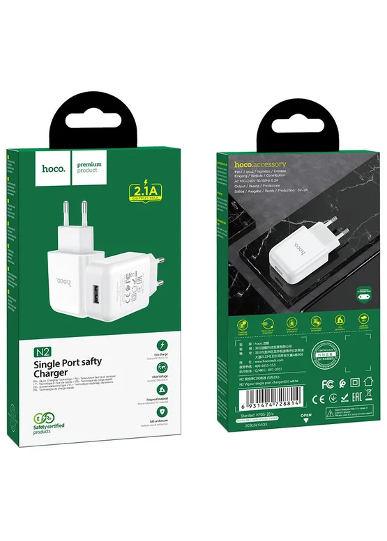 СЗУ Hoco N2 (1USB/2.1A) Белый