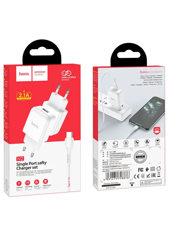 СЗУ HOCO N2 (1USB/2.1A) + USB - Type-C Белый