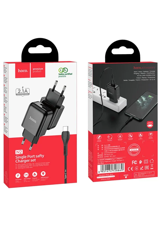 СЗУ HOCO N2 (1USB/2.1A) + USB - Type-C Черный