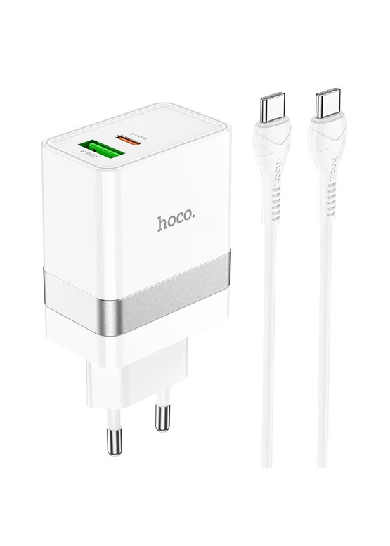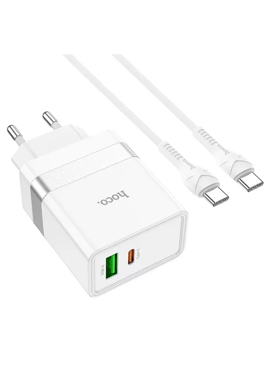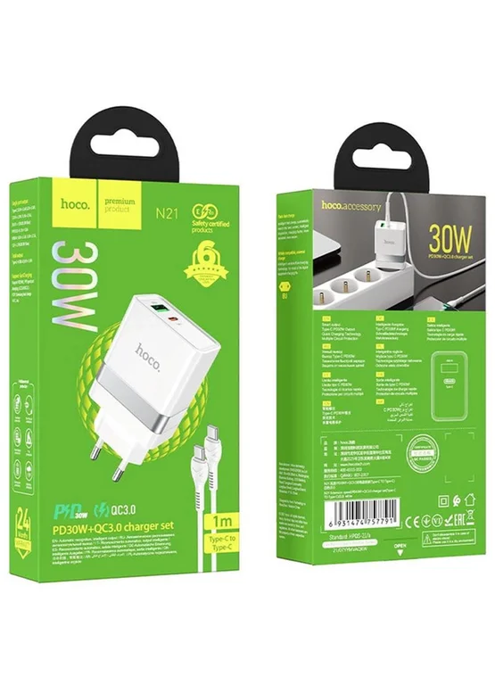 СЗУ Hoco N21 Topspeed PD30W+QC3.0 (1USB/1Type-C/3A) + Type-C + Type-C White