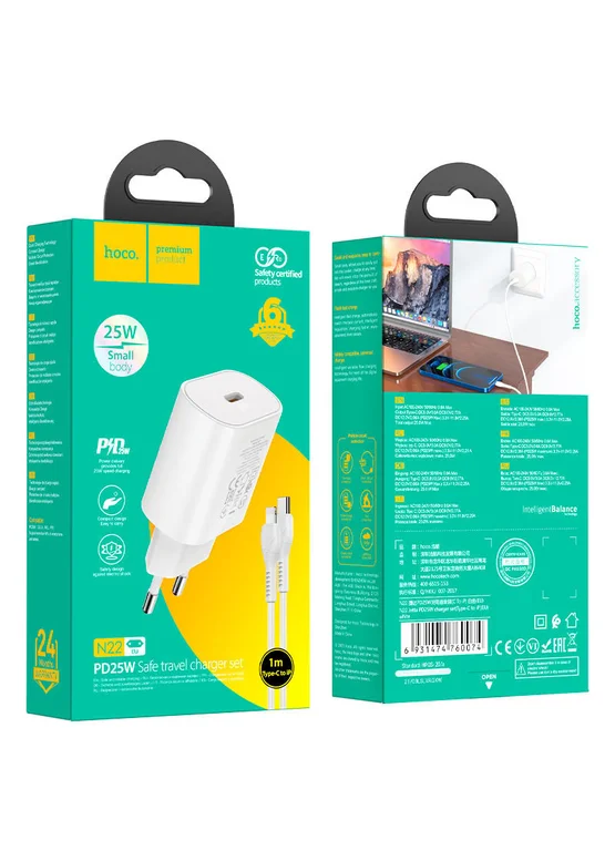 СЗУ Hoco N22 Jetta PD25W + Type-C to Lightning Белый