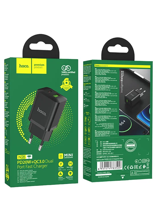 СЗУ Hoco N28 Founder 20W Type-C + USB Black