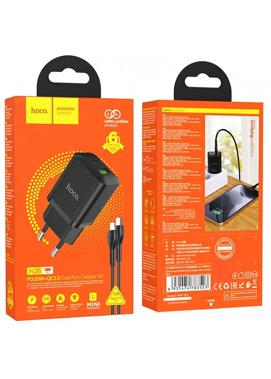 СЗУ Hoco N28 Founder PD20W+QC3.0 + Type-C to Lightning Black