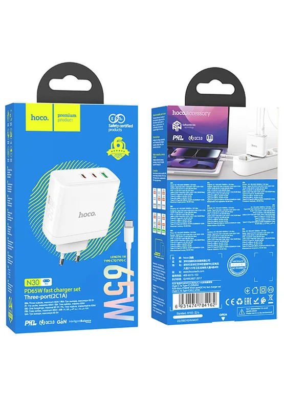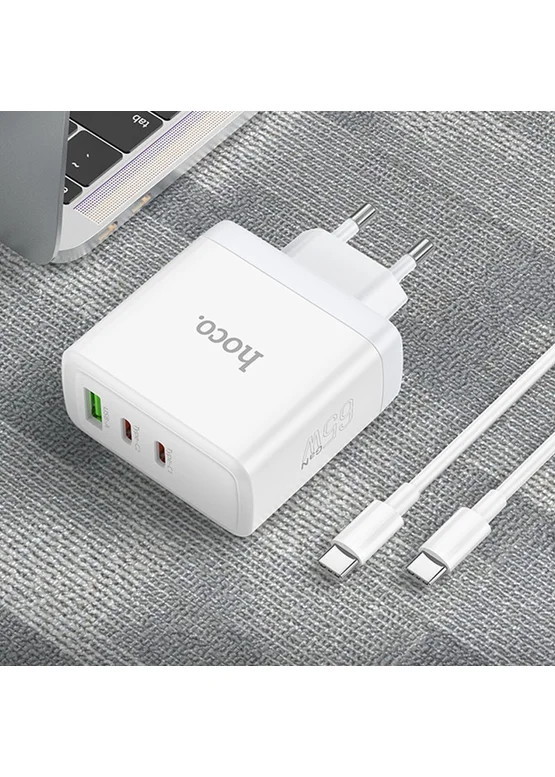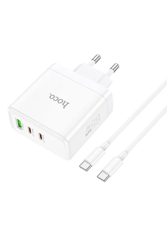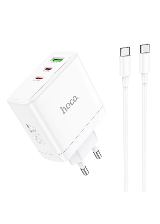 СЗУ Hoco N30 Glory PD65W (2Type-C/1USB) + Type-C to Type-C White