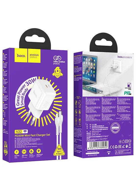 СЗУ Hoco N32 Glory PD30W Type-C to Type-C White